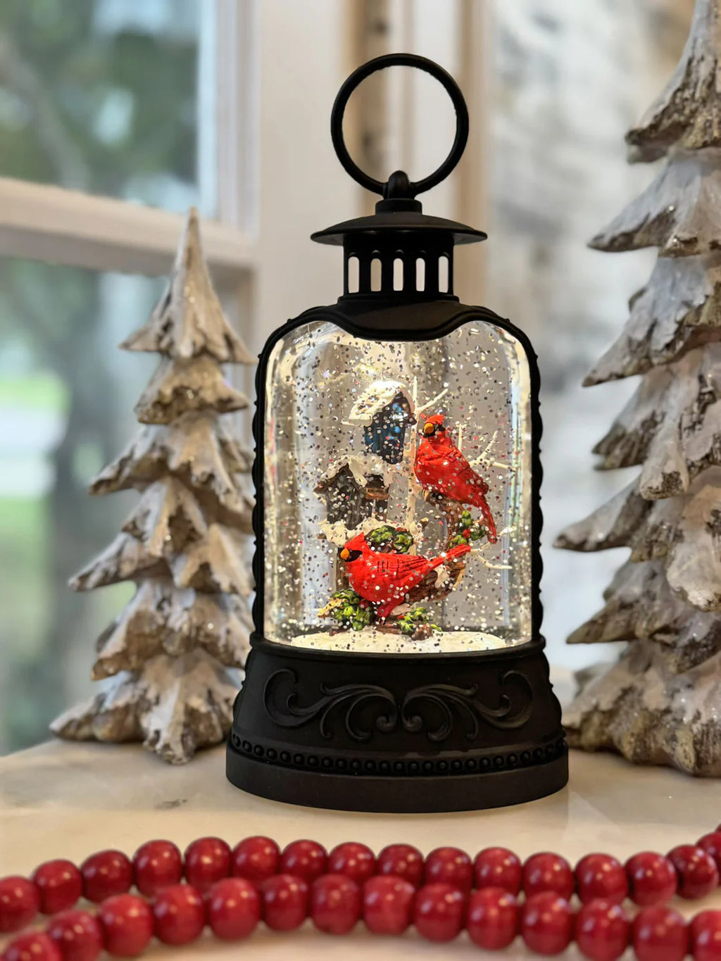 Cardinal and Birdhouse Lighted Water Lantern