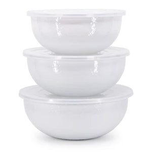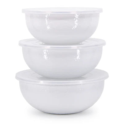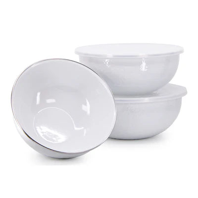 Elevate your cooking experience with the Solid Mixing Bowls in classic white enamelware! These versatile bowls are perfect for mixing ingredients, serving salads, or displaying your favorite dishes. With their timeless design and durable construction, they add a touch of elegance to any kitchen while making meal prep a breeze!